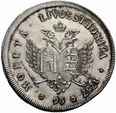96 копійок — Єлизавета (Новодель; аверс Санкт-Петербурзького монетного двору) 1758 – 1758 Лівонія та Естонія