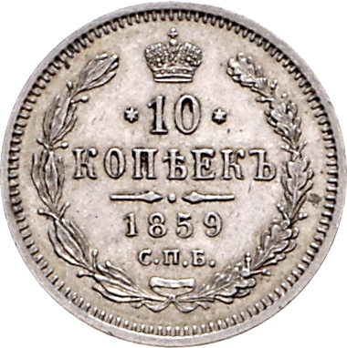 10 копійок — Олександр II 1859 – 1860 Російська імперія
