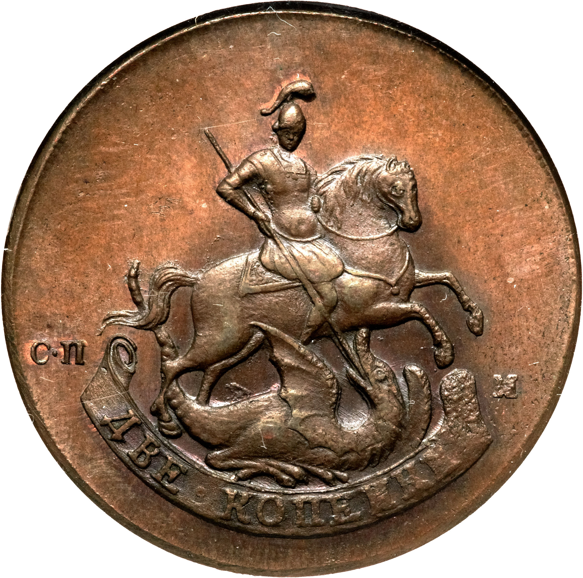 Назва: 2 копійки — Єлизавета (Новодель; номінал під вершником)