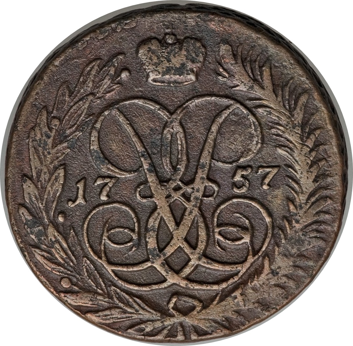 Опис: Правитель: Елізабет Монограма корони розділяє дату всередині вінка Примітка: Монетні двори Єкатеринбурга, Москви та Санкт-Петербурга (монети не можна ідентифікувати за монетним двором)