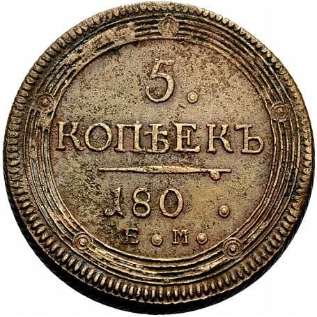 5 копійок «180» — Олександр I (ЕМ; зразок) 1802 – 1803 Російська імперія