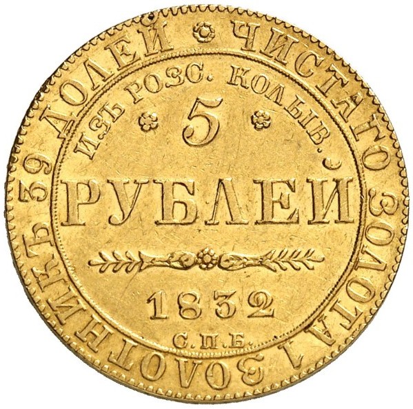 5 рублів — Микола I (Відкриття золота в Коливанських копальнях) 1832 – 1832 Російська імперія