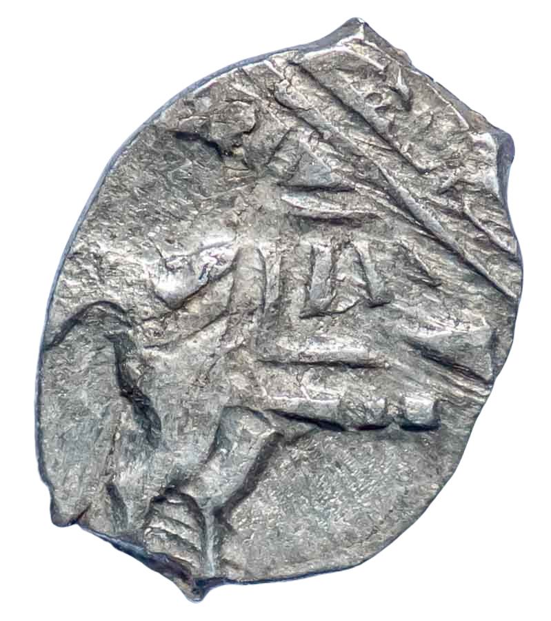 Опис: Вершник зі списом (зображує царя) на скакуні, праворуч.