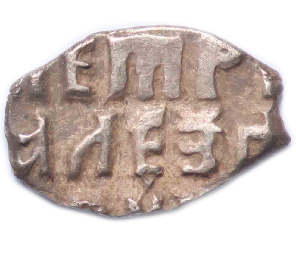 Опис: Вершник зі списом (зображує царя) на скакуні, праворуч. Літери під ногами вершника.