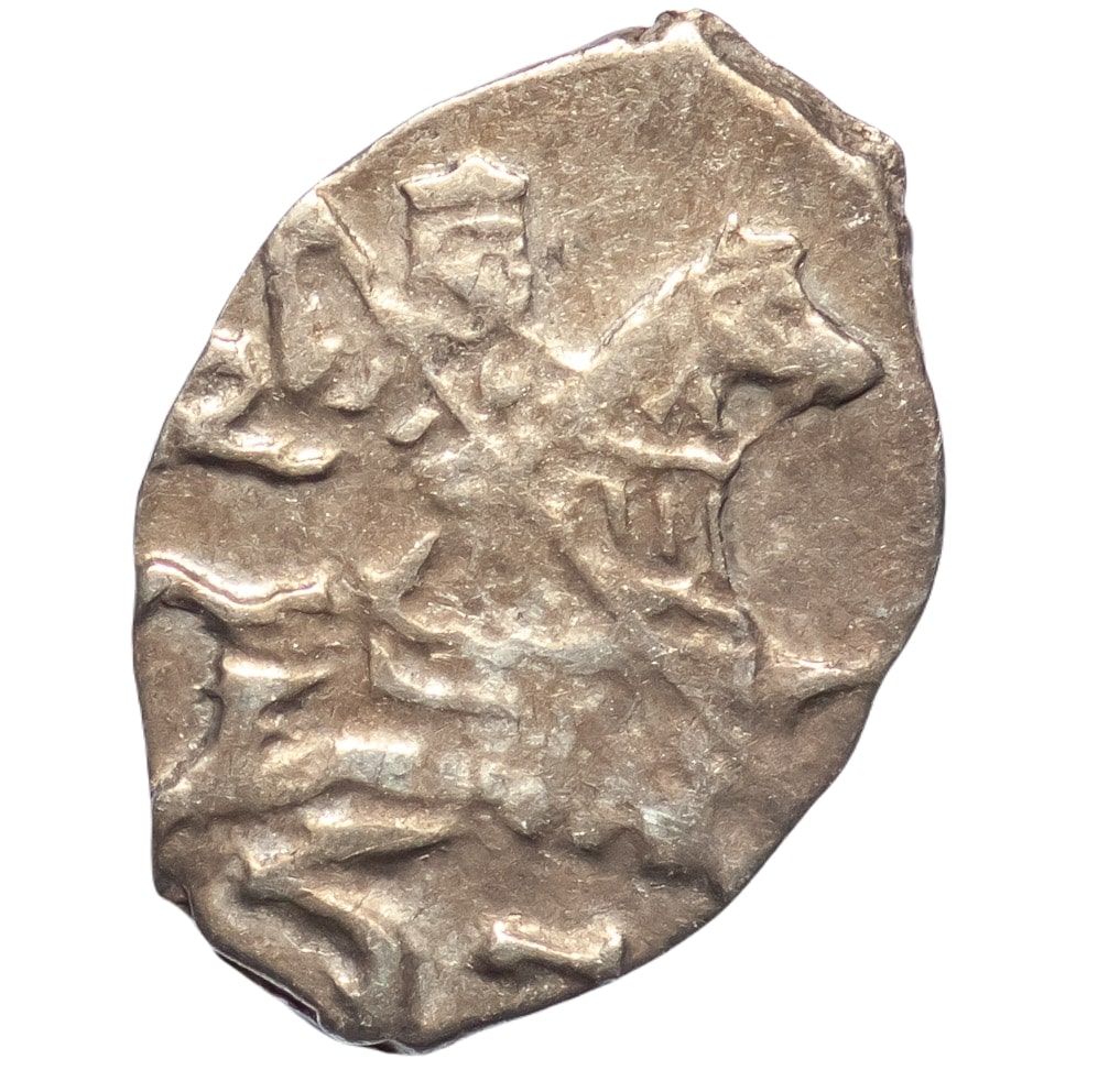 Опис: Вершник зі списом (зображує царя) на скакуні, праворуч. Літери під ногами вершника.