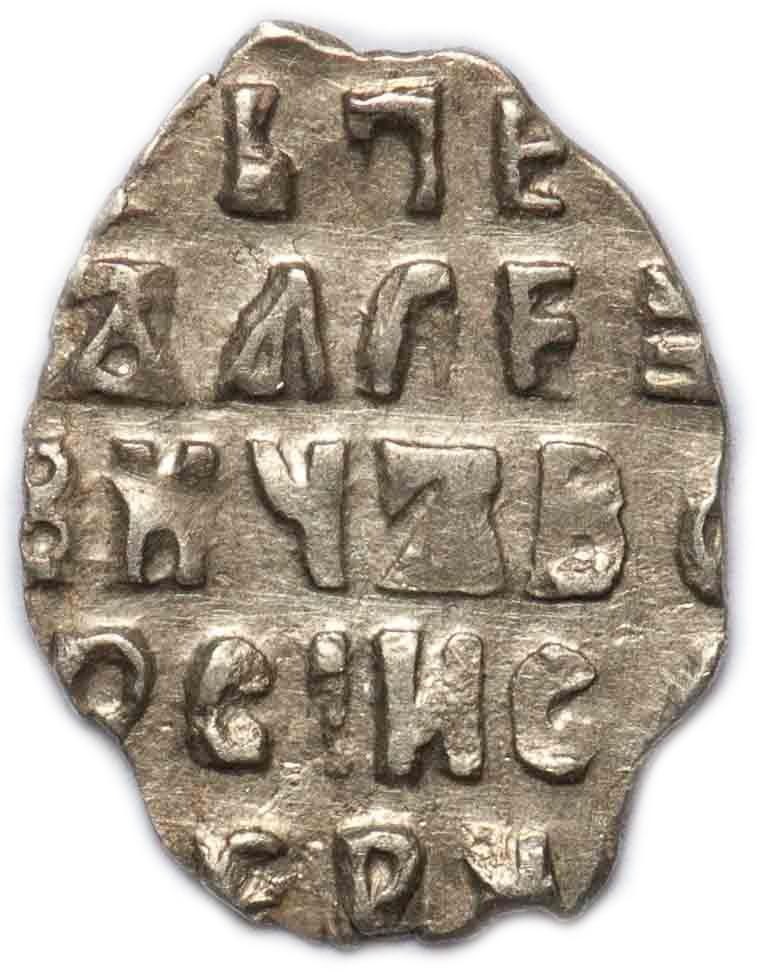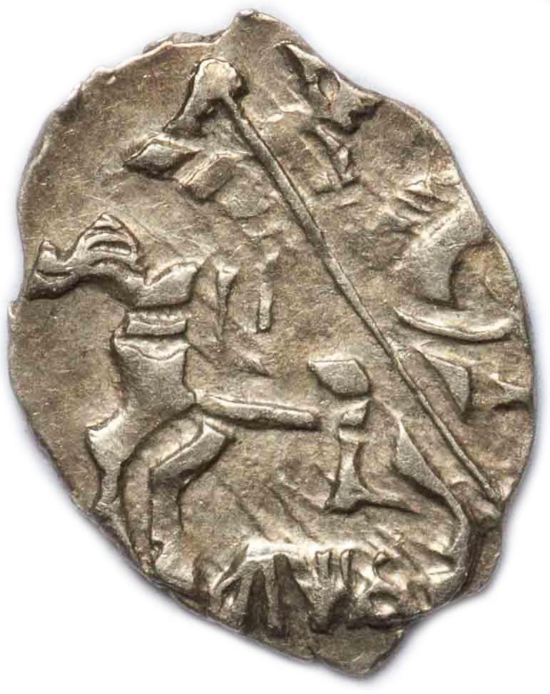 Опис: Вершник зі списом (зображує царя) на скакуні, праворуч. Літери під ногами вершника.