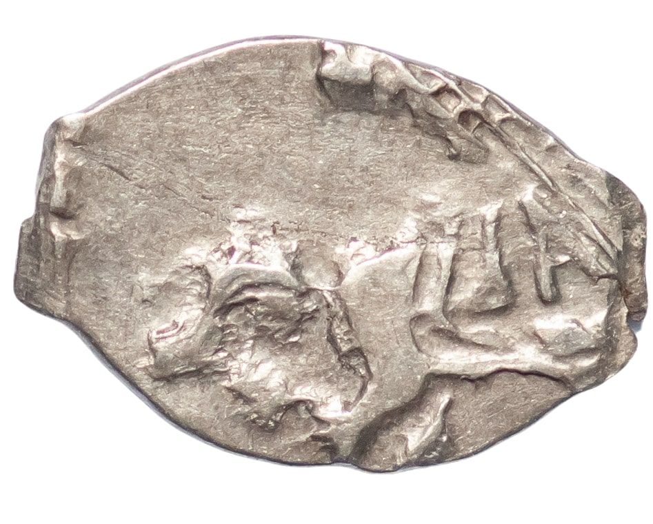 Опис: Вершник зі списом (зображує царя) на скакуні, праворуч. Літери під ногами вершника.