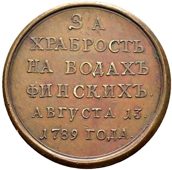 Медаль — Катерина II (За хоробрість у фінських водах) 1789 – 1789 Російська імперія