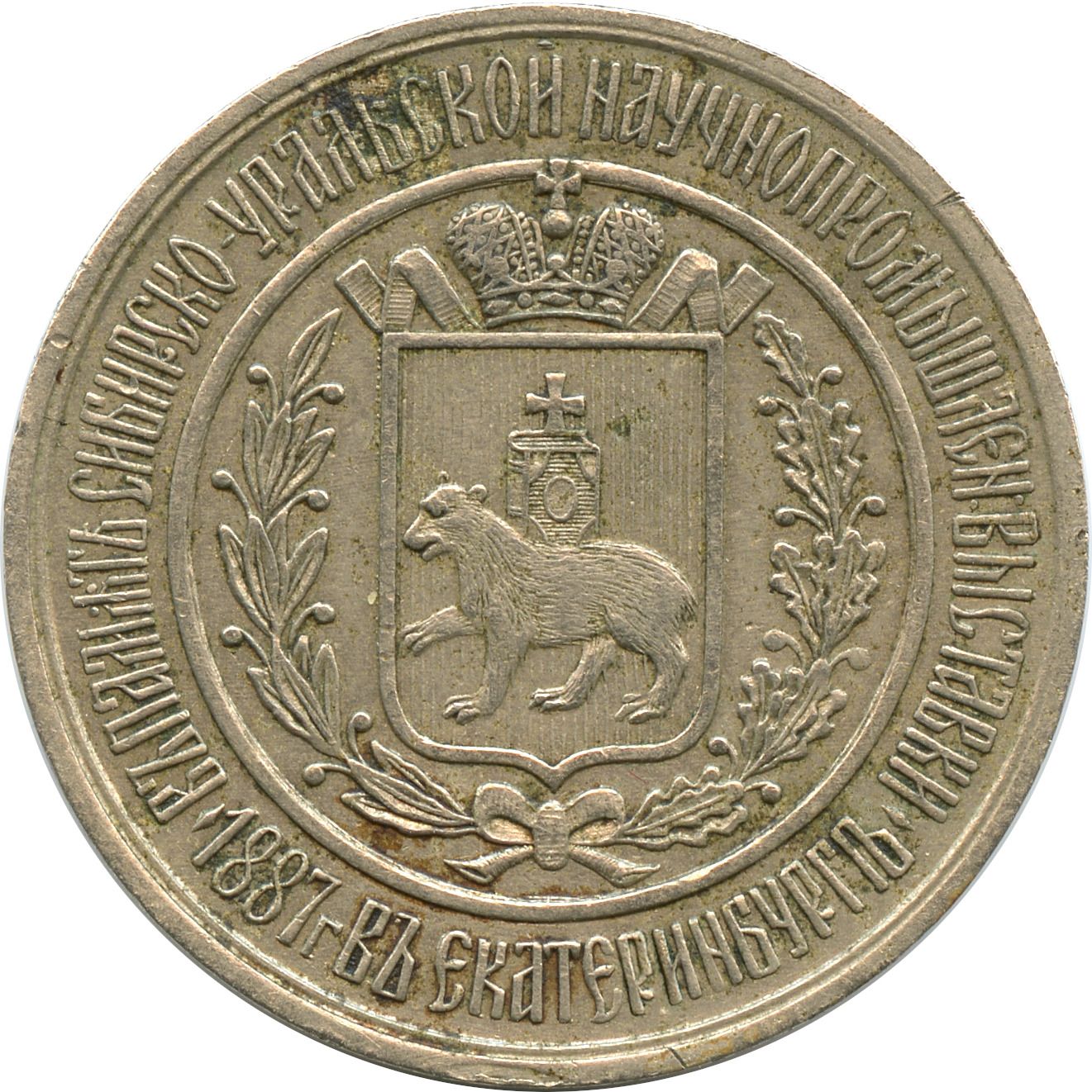 Медаль — на згадку про Сибірсько-Уральську науково-промислову виставку в Єкатеринбурзі в 1887 році 1887 – 1887 Російська імперія