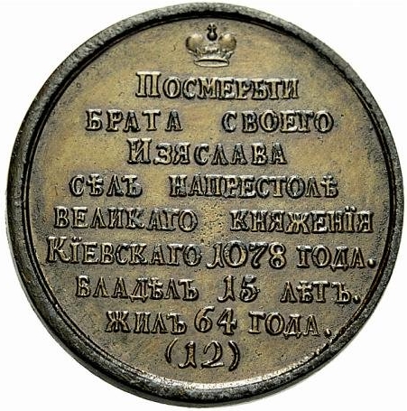 Медаль — великий князь Всеволод І Ярославич, 1078–1093 (№ 12) Російська імперія