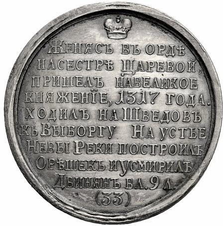 Медаль — Великий князь Юрій III Московський, 1317–1326 (№ 33) Російська імперія