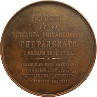 Назва: Медаль — На згадку про графа М. М. Сперанського