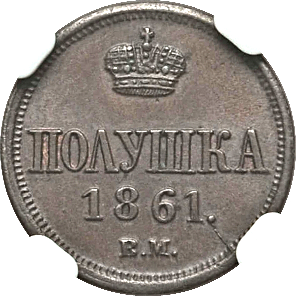 Полушка — Олександр II (Варшавський монетний двір; мала корона) 1861 – 1861 Російська імперія
