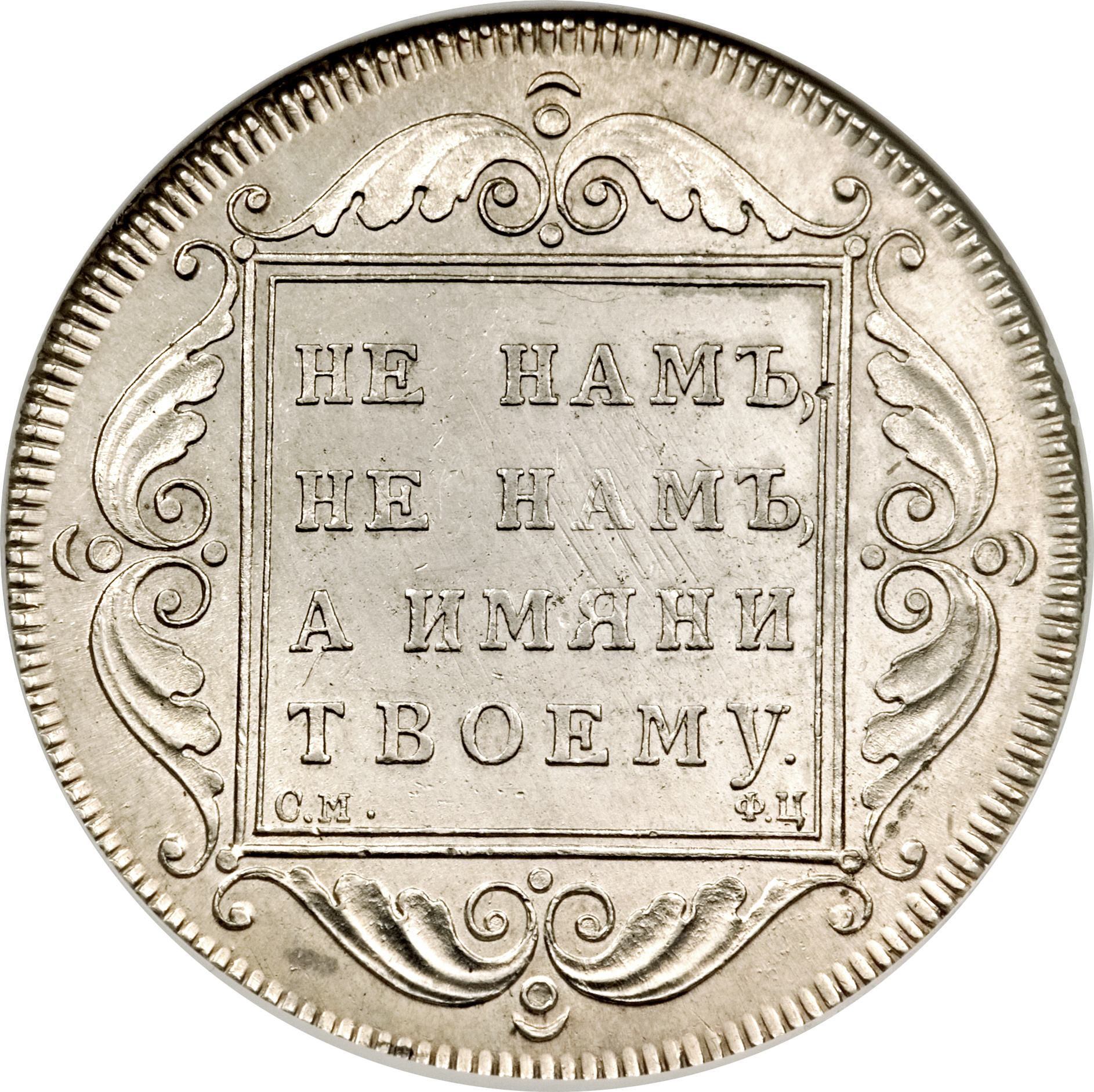Опис: Чотири увінчані П (P для Павла), сформовані у вигляді хреста, з римською цифрою I посередині. Дата внизу ліворуч, номінал внизу праворуч.