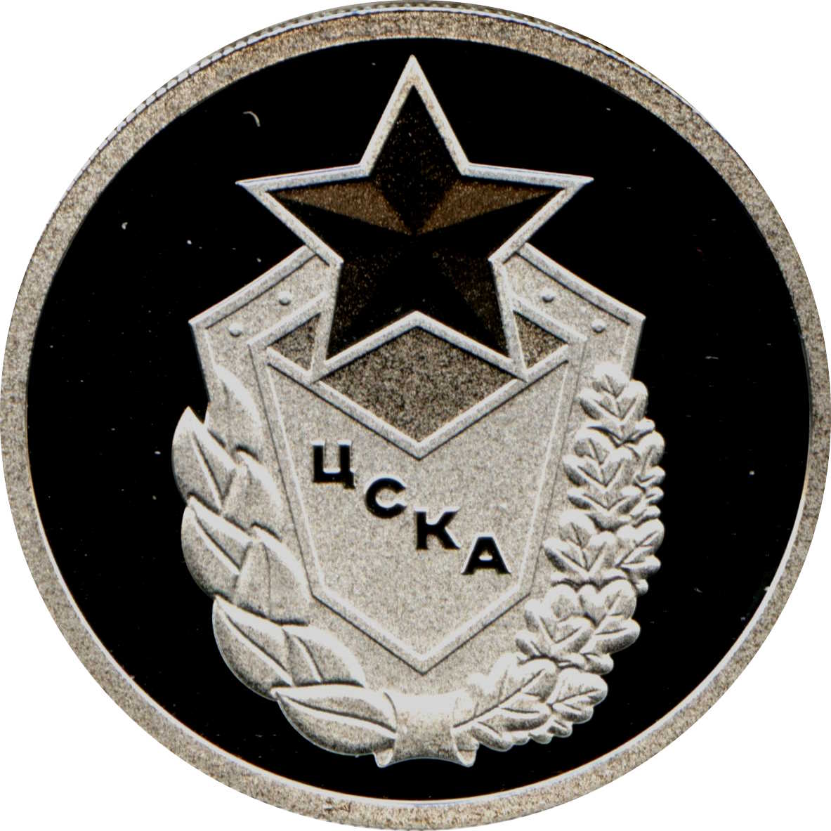 Опис: На зворотному боці монети зображено рельєфний герб Центрального спортивного клубу армії.