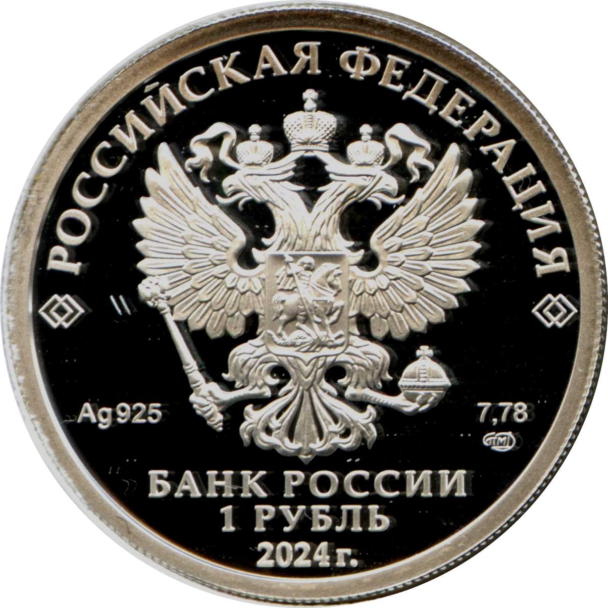 Опис: На аверсі монет зображено рельєфний герб Російської Федерації та написи «РОССИЙСКАЯ ФЕДЕРАЦИЯ» (РОСІЙСЬКА ФЕДЕРАЦІЯ) і «БАНК РОССИИ» (БАНК РОСІЇ), номінал монети «1 РУБЛЬ» (1 РУБЛЬ), рік випуску «2024 г.» (2024), хімічний символ металу за періодичною таблицею Менделєєва, проба, товарний знак Санкт-Петербурзького монетного двору та вміст дорогоцінного металу.