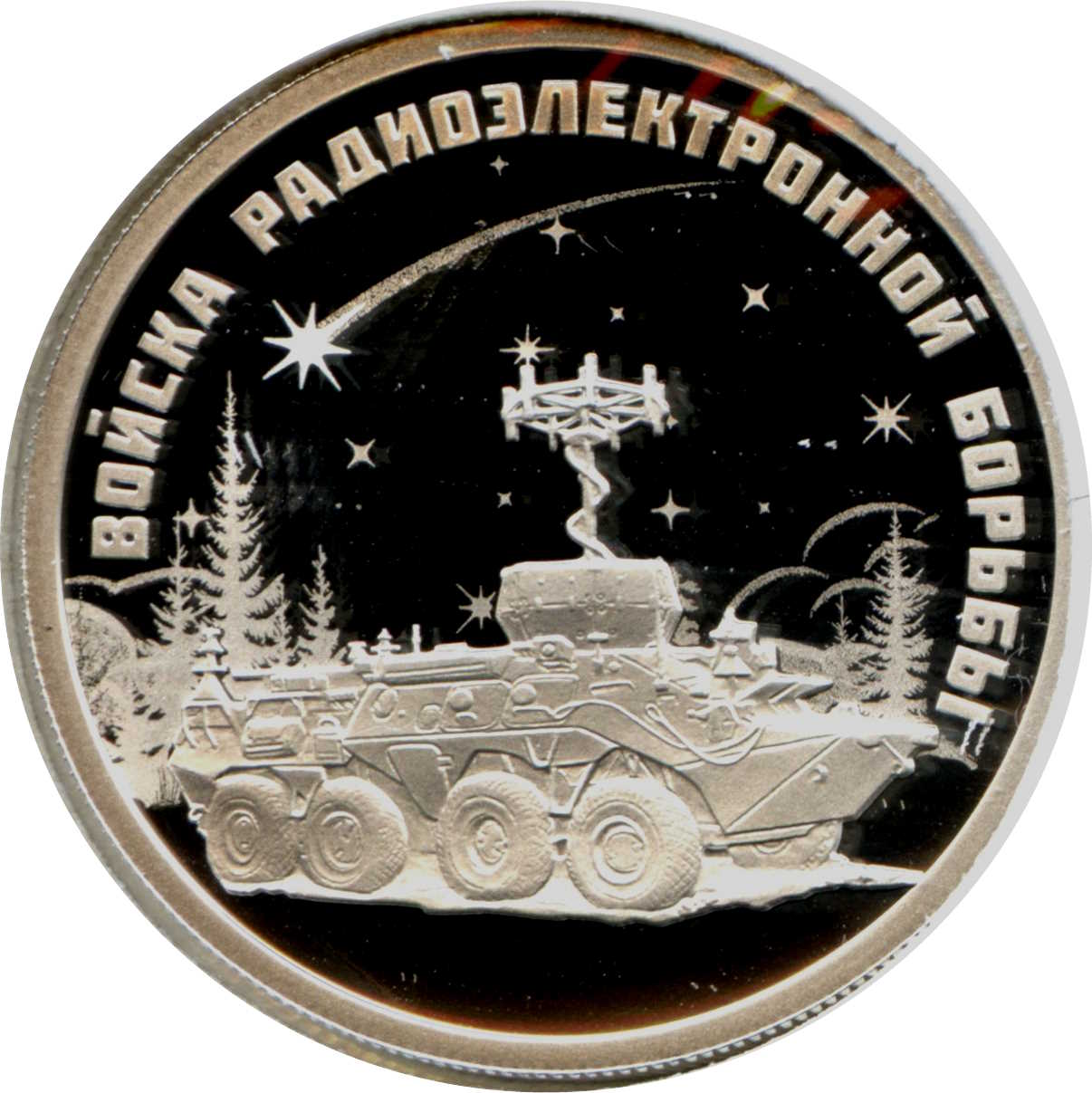 Опис: На дзеркальній поверхні диска зображено рельєфне зображення системи радіоелектронної боротьби «Інфауна» на тлі нічного неба та лісу, оброблене лазером для матового покриття; по верхньому колу розміщено рельєфний напис «ВОЙСКА РАДИОЭЛЕКТРОННОЙ БОРЬБЫ» (ВІЙСЬКА РАДІОЕЛЕКТРОННОЇ БОРОТЬБИ).