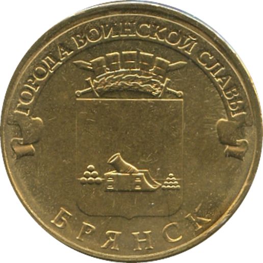 Опис: Номінал у центрі: «10 РУБЛІВ». Голографічні зображення «10» і «РУБ» всередині цифри «0» номіналу. Гілка оливи ліворуч, гілка дуба — праворуч. Написи: «БАНК РОСІЇ» зверху, дата «2013» знизу.