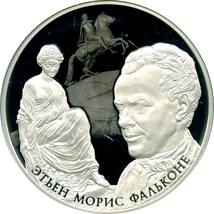 Опис: Рельєфні зображення статуї «Зима» ліворуч і портрет Фальконе на тлі пам'ятника Петру Великому в Санкт-Петербурзі праворуч. По периметру внизу є напис «ЭТЬЕН МОРИС ФАЛЬКОНЕ» (ЕТЬЕН МОРІС ФАЛЬКОНЕТ).
