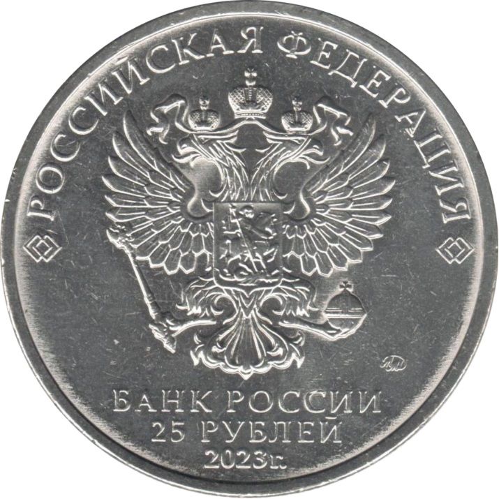 Опис: На аверсі монет зображено рельєфний герб Російської Федерації, над ним по верхньому колу напис «РОССИЙСКАЯ ФЕДЕРАЦИЯ» (РОСІЙСЬКА ФЕДЕРАЦІЯ), обрамлений з обох боків парними ромбами, праворуч — знак Московського монетного двору, а в центрі монет під гербом — трирядковий напис: «БАНК РОССИИ» (БАНК РОСІЇ), номінал монети «25 РУБЛЕЙ» (25 РУБЛІВ) і рік випуску «2023 г.» (2023).