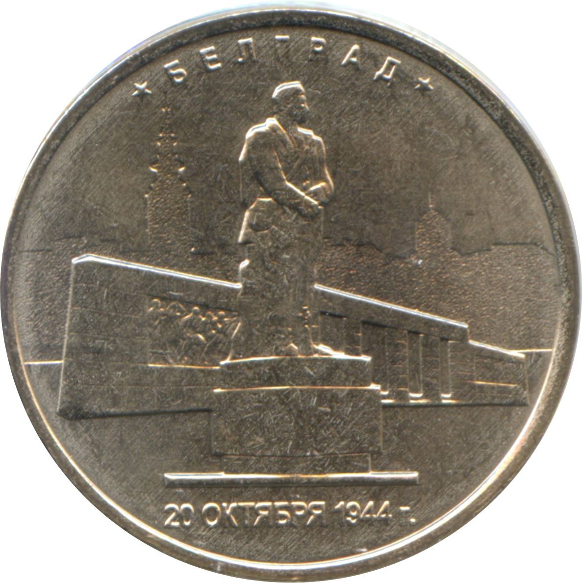 Опис: Рельєфне зображення частини пам'ятника солдатам-визволителям у Белграді. Є написи: «БЕЛГРАД» (BELGRADE), обрамлений двома зірками по колу зверху, «20 ОКТЯБРЯ 1944 г.» (20 жовтня 1944 р.) горизонтально внизу.