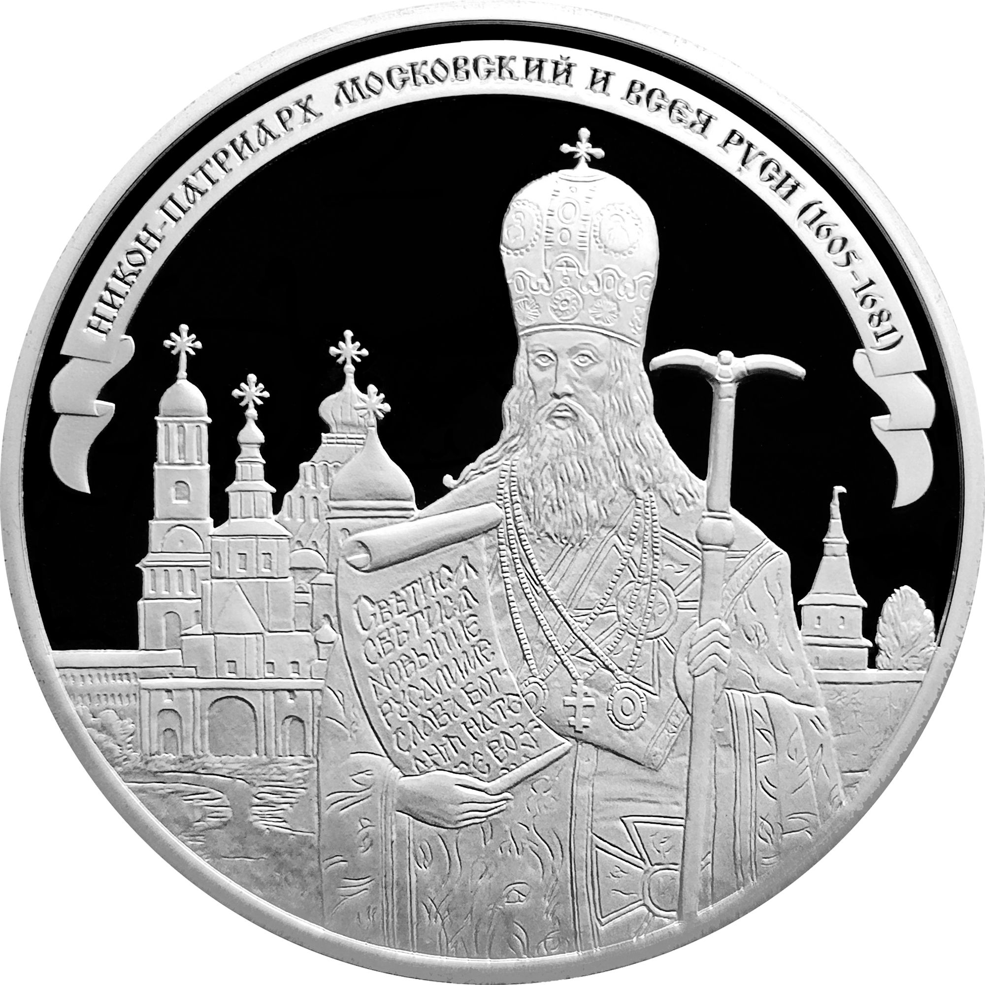 Опис: Зображення патріарха Московського і всієї Русі Никона (1605–1681) на тлі монастиря Воскресення Нового Єрусалиму.