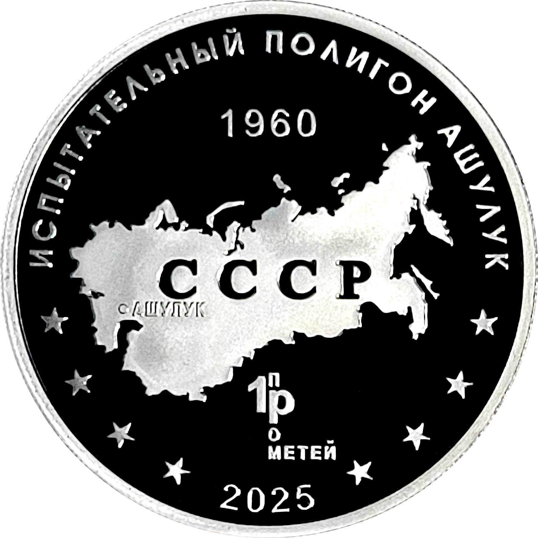 Опис: Карта СРСР, назва випробувального полігону та рік його відкриття, а також рік випуску медалі та напис.