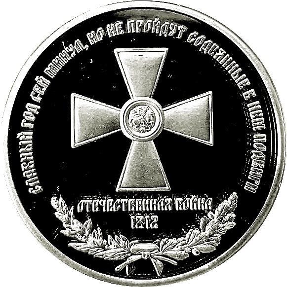 Опис: На звороті зображено Георгіївський хрест — найвищу військову нагороду Російської імперії; надпис — «Цей славний рік минув, але вчинки, зроблені в ньому, не минуть».