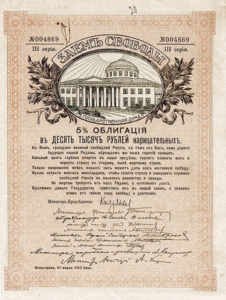 10 000 рублів (5% облігація свободи) 1917 – 1917 Російська Республіка