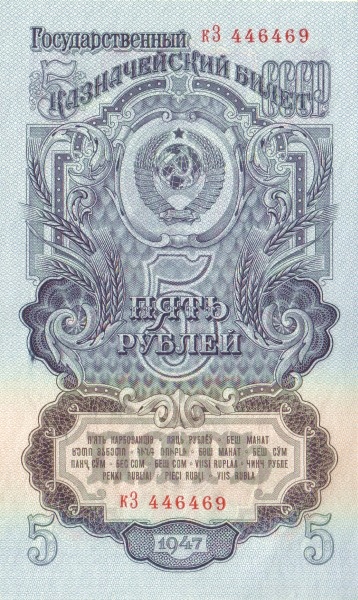5 рублів (16 стрічок) 1947 – 1947 Радянський Союз