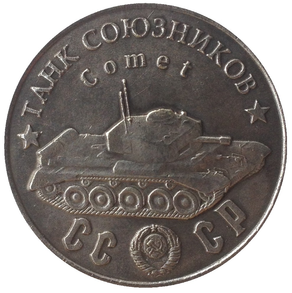 Опис: Назва серії танків у верхній частині; Allied Tank Comet; герб СРСР між літерами CC і CP.