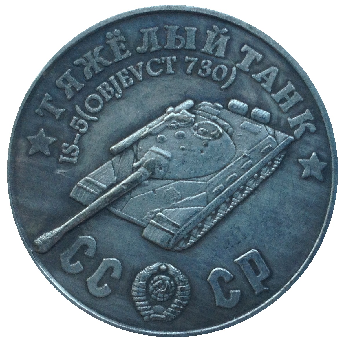 Опис: Назва серії танків у верхній частині; радянський важкий танк ІС- (ОБ'ЄКТ 730); герб СРСР між літерами CC і CP.