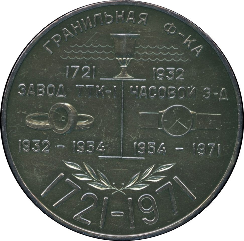 Медаль — 250-річчя годинникового заводу «Петродворець» 1971 – 1971 Радянський Союз