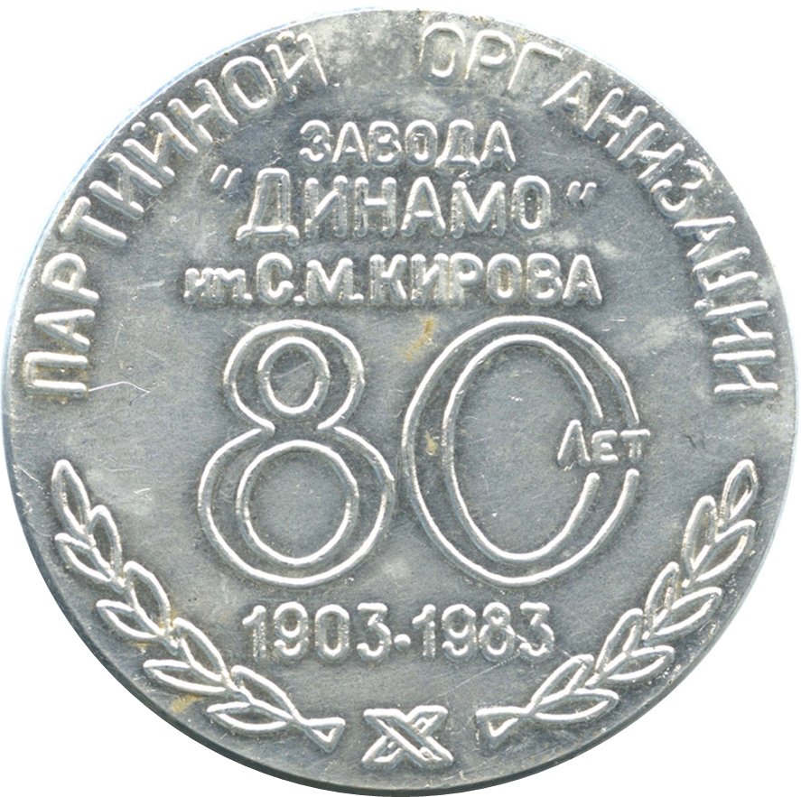 Медаль — 80-річчя партійної організації заводу «Динамо» 1983 – 1983 Радянський Союз