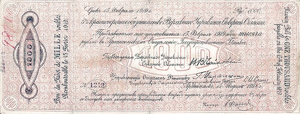 1000 рублів (Уряд Північного регіону) 1918 – 1918 Північний регіон, Провінційний уряд