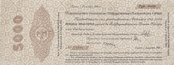 Назва: 5000 рублів (Перша Тимчасова адміністрація Сибіру)