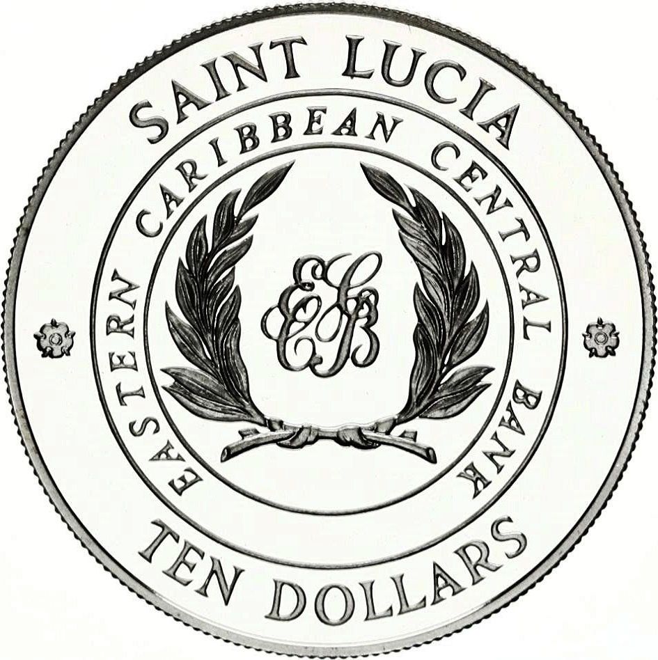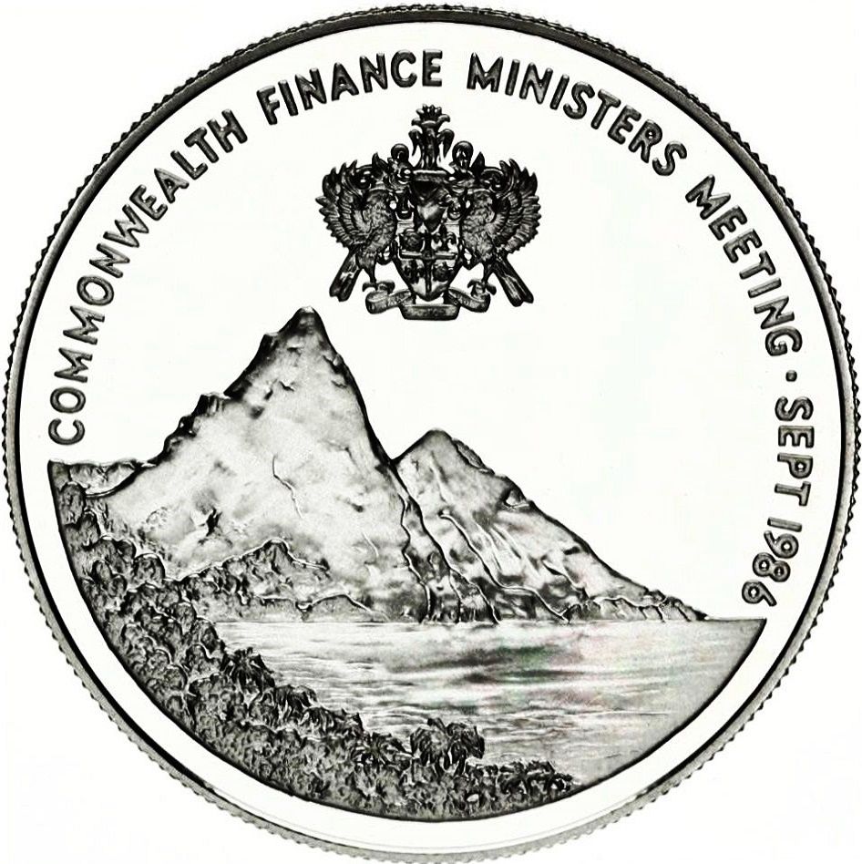 10 доларів — Єлизавета II (зустріч міністрів фінансів Співдружності) 1986 – 1986 Сент-Люсія