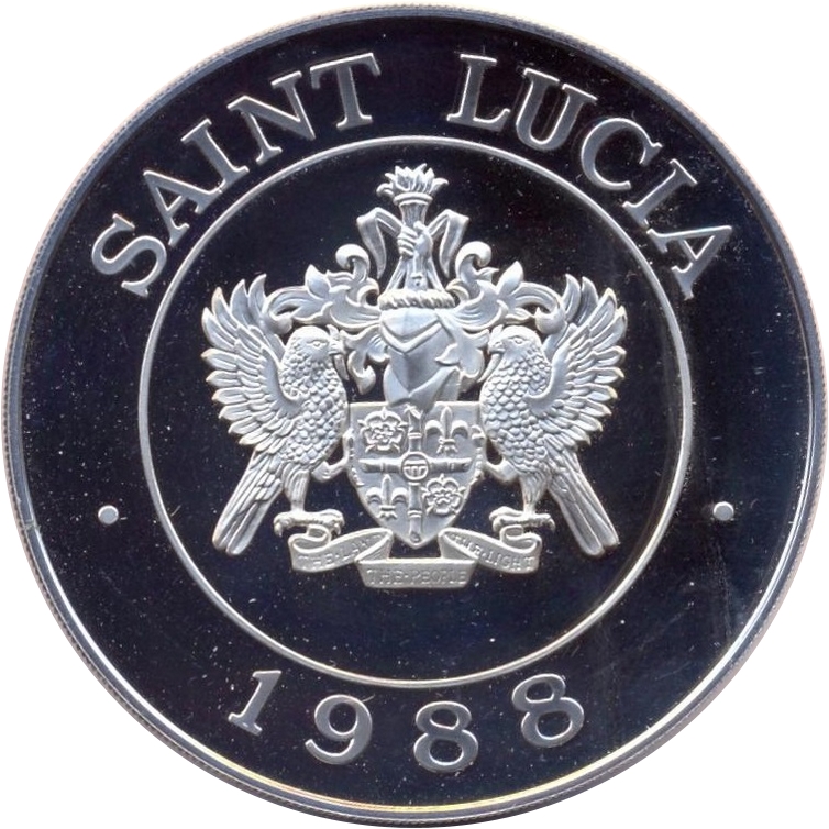100 доларів — Єлизавета II (папуги амазонські) 1988 – 1988 Сент-Люсія