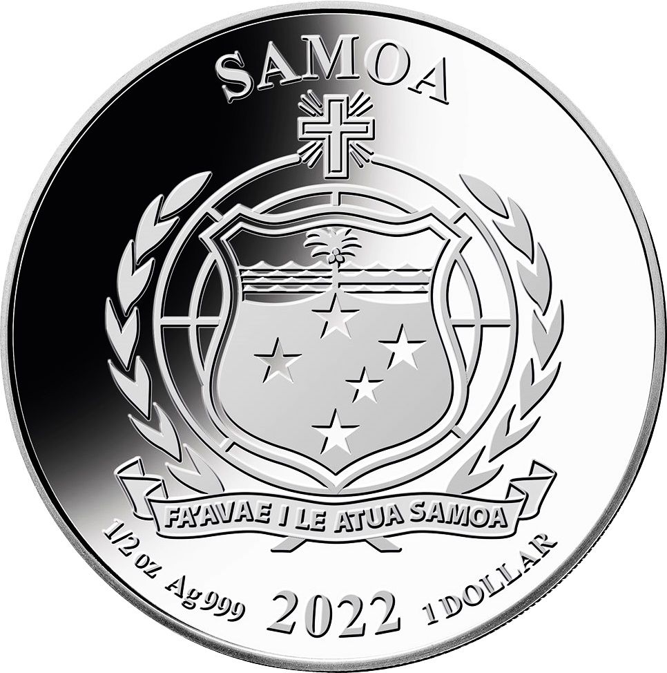 Опис: Герб Самоа, вага, проба та номінал вказані нижче.