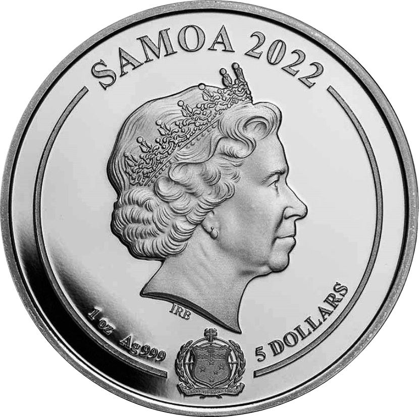 Опис: Зображення королеви Єлизавети II в короні, звернене вправо, під ним — невеликий герб Самоа.