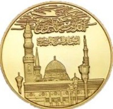 Опис: Арабська каліграфія над зображенням мечеті Пророка в Медині.