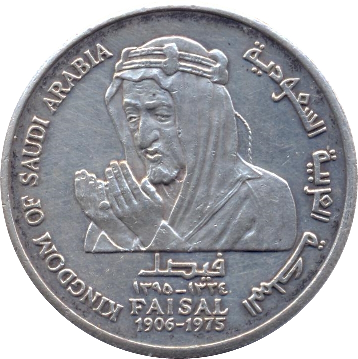 Опис: Бюст короля Фейсала бін Абдулазіза Аль-Сауда, звернений ліворуч у молитві