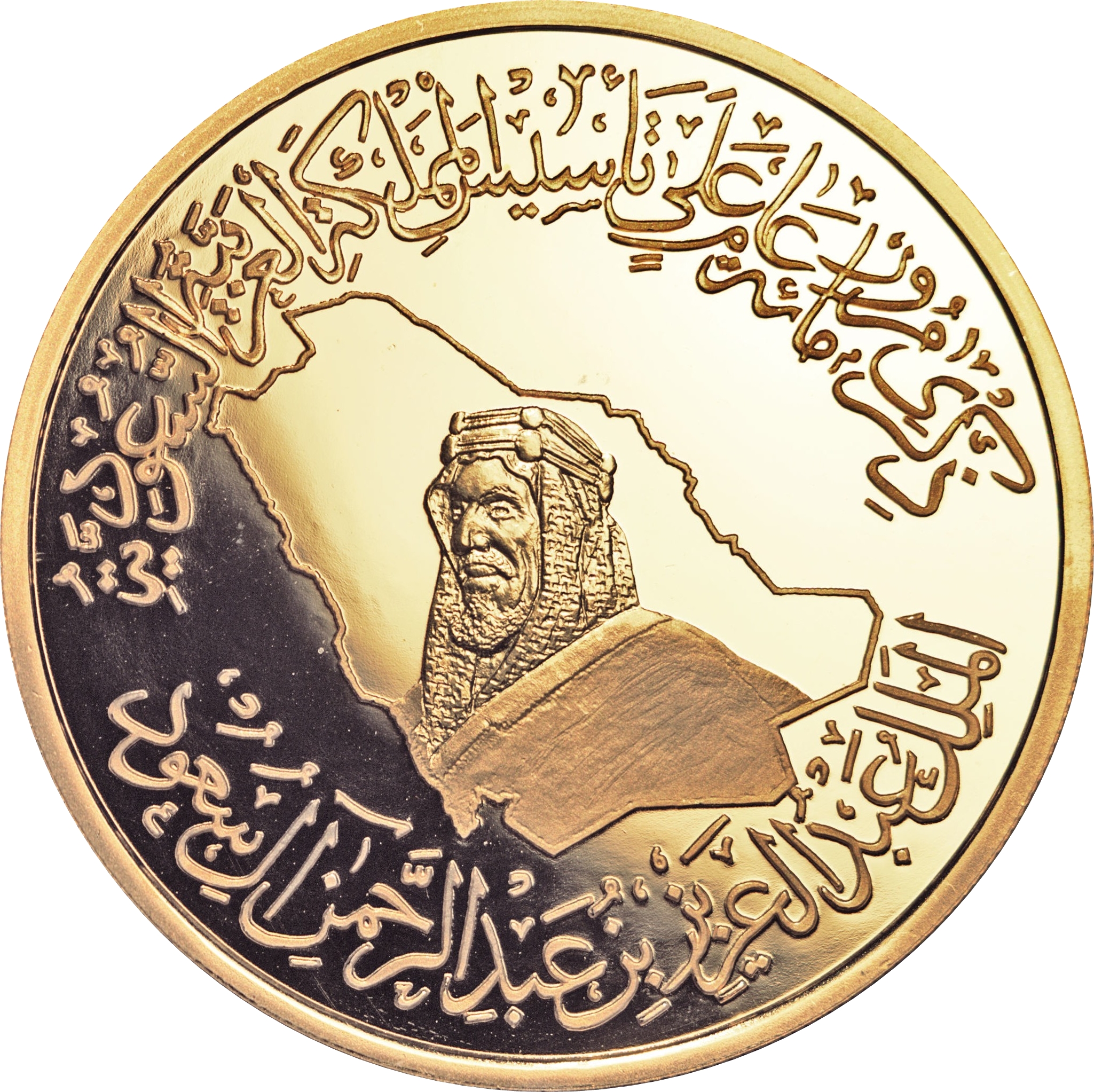 Опис: Бюст короля Абдулазіза Аль Сауда, звернений вліво, над картою Саудівської Аравії.