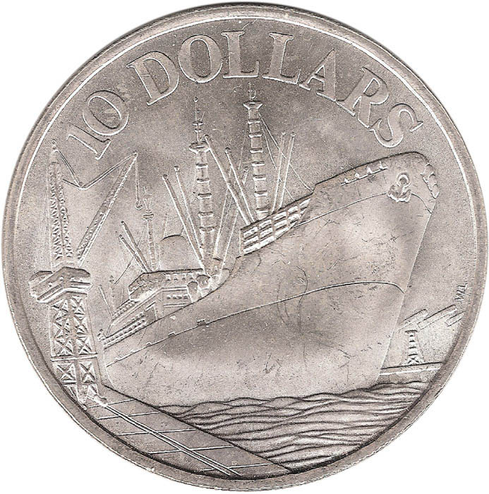 10 доларів (вантажне судно біля причалу) 1976 – 1977 Сінгапур