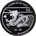 Назва: 2 долари (Рік Дракона; срібна монета)