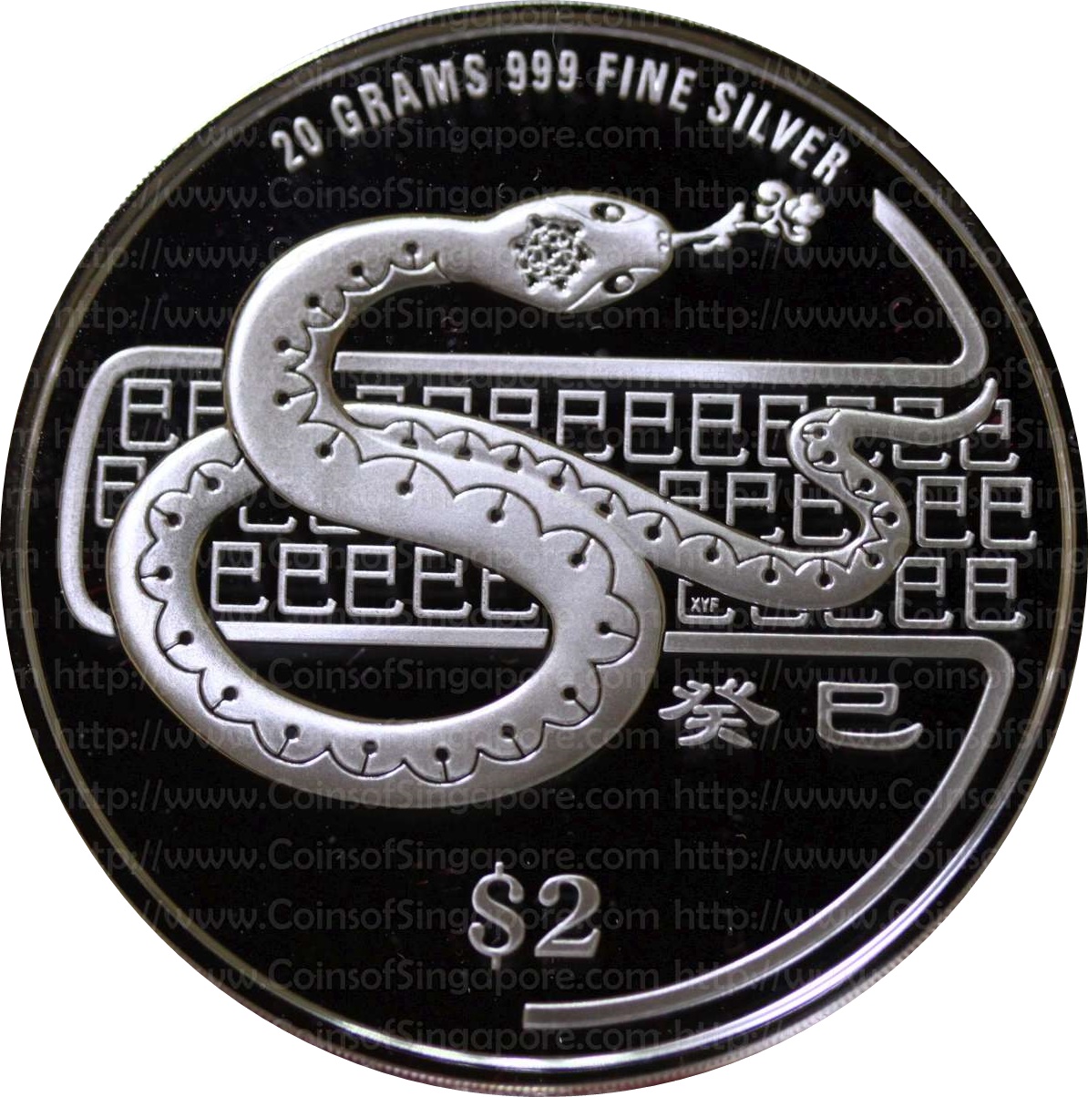 Назва: 2 долари (Рік Змії; срібна монета Proof)