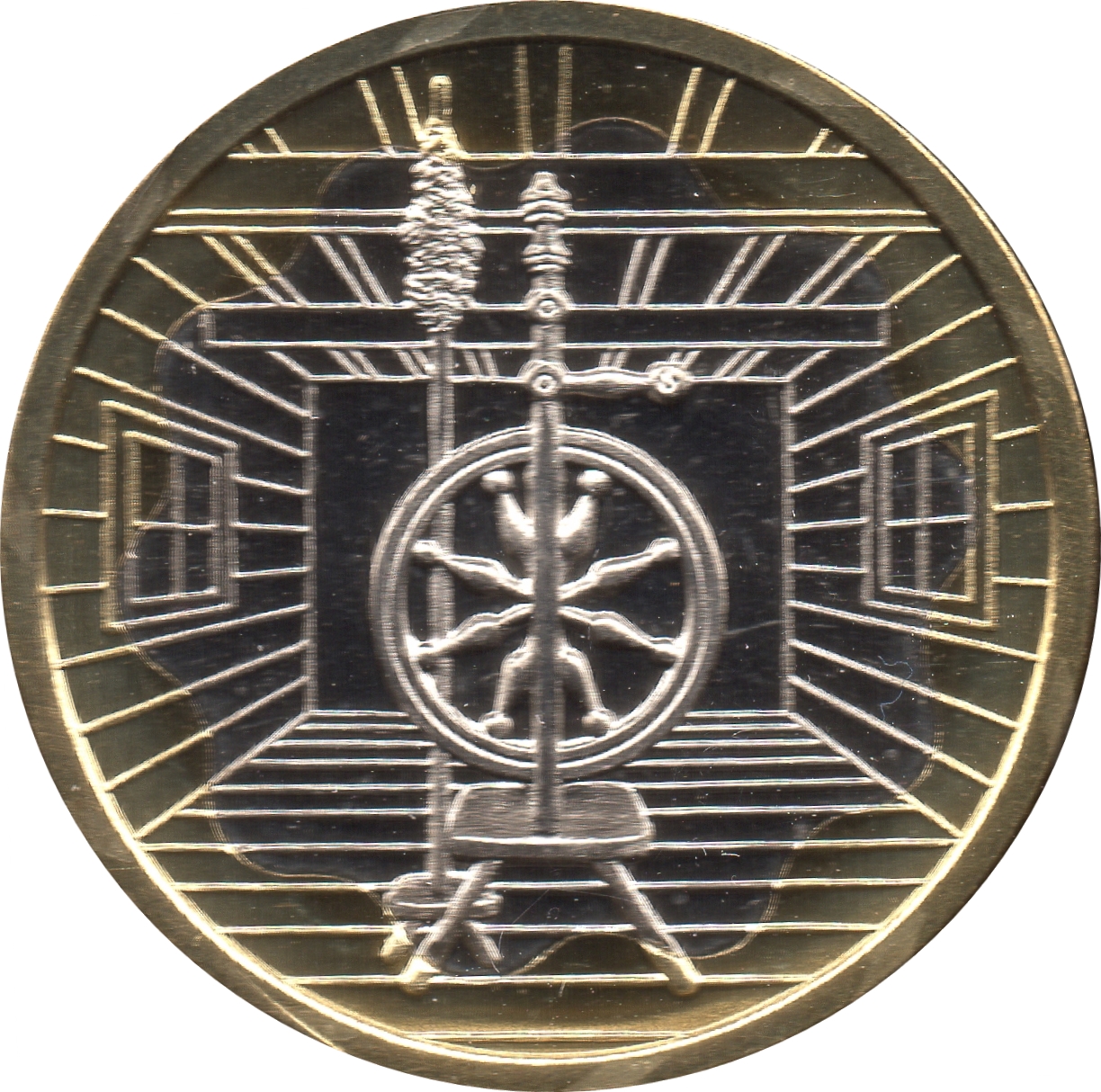 Метал: Біметалева: мідно-нікелева середина в латунному кільці