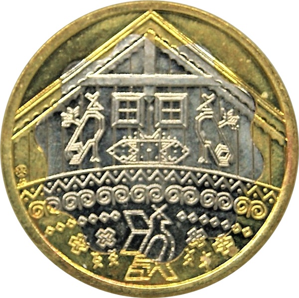 Метал: Біметалева: мідно-нікелева середина в латунному кільці