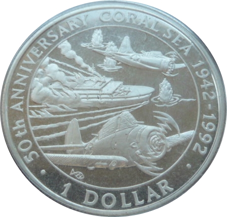 1 долар — Єлизавета II (50-та річниця Коралового моря) 1992 – 1992 Соломонові Острови