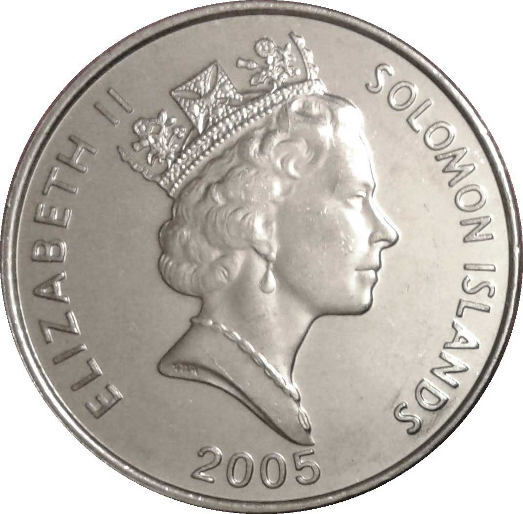 10 центів — Єлизавета II (3-й портрет; магнітна) 1990 – 2010 Соломонові Острови